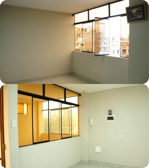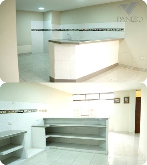 Distribución: Sala comedor, cocina amplia reposteros abiertos de cemento. Cuenta también con 2 habitaciones, cuarto principal iluminado con baño completo con pequeños estantes de melamine, y la otra habitación con vista a la sala Cuarto pequeño que podría servir como cuarto de estudio o almacén. Baño secundario completo con ducha española y con hidromasaje.