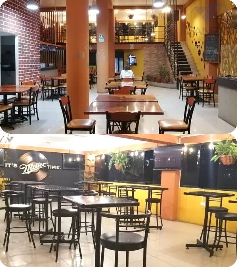 Y el tercer piso o nivel que da a la calle donde funciona el restaurant equipado con 25 mesas de 4 sillas cada una este local tiene 2 barras una donde funciona la licorería y la otra donde funciona la caja este local cuenta con servicio higiénico tanto para hombres como mujeres con 1 baño cada uno y con 2 lava cara cada uno; este ambiente también tiene su propio mezanine con baño independiente.